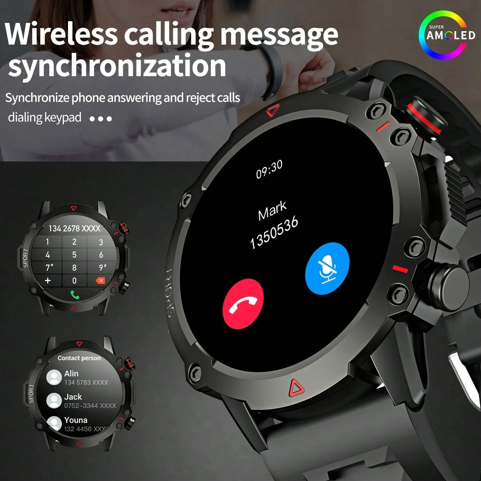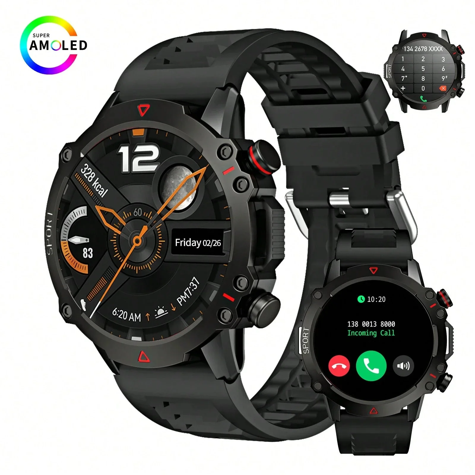 Function: fitness tracker,Call Reminder,Dial Call,World Time,Countdown,Calculators